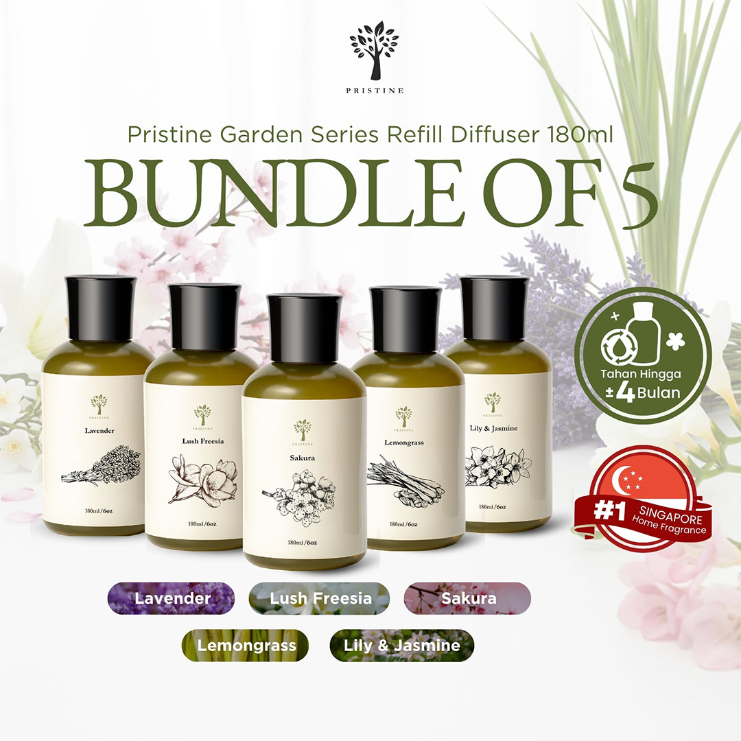 Rasakan suasana alam yang lebih dekat lewat rangkaian aroma garden dari Pristine, terinspirasi dari “garden city” Singapura. Satu bundle ini hadir lengkap dengan 1 botol refill 180ml untuk setiap aroma berikut:
